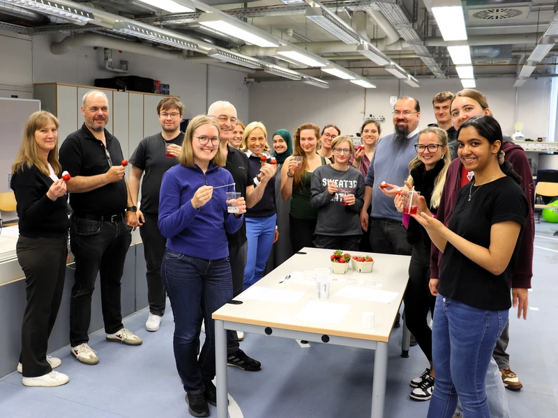 Under the guidance of Professor Ludwig M. Lausser and Professor Kathrin Tissot-Daguette, the participants experimented with everyday materials and biological expertise and unearthed visible strands of DNA. Strawberries, melons, and bananas played the main role this time: they provide a particularly large amount of genetic material and are ideal for demonstration purposes. In combination with washing-up liquid, salt solution, and a little patience, what is normally hidden in every cell became visible. ‘The idea was to make science tangible - in the truest sense of the word,’ explained Professor Lausser. ‘And it turns out that even without a high-tech laboratory, you can visualise fundamental biological processes with simple means.’ It was obvious that the whole thing was fun, not least because of the many aha moments and smiling faces in the room. For the bioinformatics and medical informatics students at THI, the experiment was not only a practical insight into molecular biology, but also proof of how creative and accessible science can be, with cream, but without the frills. And the grand finale? The leftover strawberries were eaten together, of course. |