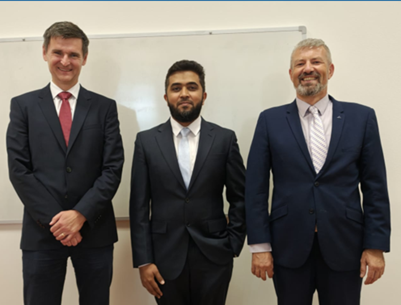 The Doctoral School congratulates Shahabaz (centre in the photo), his supervisor Prof. Ing. Luděk Hynčík, Ph.D. from the University of West Bohemia in Pilsen (right in the photo) and his supervisor Prof. Ing. Ondřej Vaculín, Ph.D. from the Technical University of Ingolstadt (left in the photo).