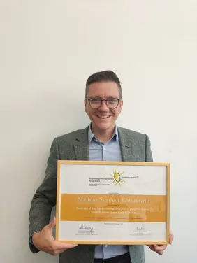 The Solarenergieförderverein Bayern e. V. (SeV) awarded a prize to Dr Mathias Ehrenwirth's dissertation entitled "Theoretical and Experimental Analysis of Polymer-Based Solar Thermal Drain Back Systems". As part of his doctoral thesis, Dr Ehrenwirth investigated the extent to which polymers can contribute to cost-effective solar thermal collectors and systems. This project was embedded in a research project funded by the German Federal Ministry for Economic Affairs and Energy, which was carried out together with the company Roth Werke GmbH at the Institute for New Energy Systems (InES). The central result is that solar thermal collectors made of polymers can lead to significant savings, especially if the surrounding system takes their special requirements (for example, low pressure and temperature stability) into account.