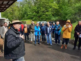 Mr Häfner explains the concept of the Eltmann local heating supply to the visitors. One current measure to increase efficiency is the replacement of old steel pipes with efficient plastic pipework.