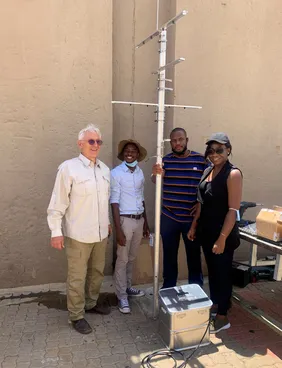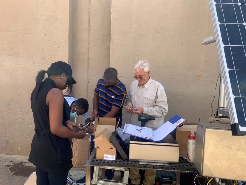 The weather station was procured by the InES and initially delivered to the local PROCEED partner Alensy Energy Solutions in Windhoek. Because the InES researchers were not able to travel to Namibia in person due to the COVID-19 pandemic, a local engineering service provider, Amusha Consultancy Services, was contracted to install the weather station. The station was first set up in Windhoek and configured for data transmission via the Namibian mobile network. Several students from the Namibia University of Science and Technology were also involved in this work. Through learning by doing, they gained practical experience and skills in setting up a modern instrument for environmental monitoring that complies with international standards. The students were also involved in the configuration and troubleshooting of the station. Therefore, the new weather station in Tsumkwe exemplifies two core targets of the PROCEED project: the transfer of technology and knowledge.