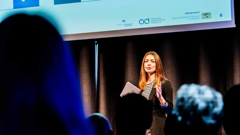 Alexander Baur, Professor for Innovative Mobility Concepts & Business Models of Artificial Intelligence at THI Business School, then presented the technical and strategic aspects of AI in a specialist lecture, supplemented by contributions from representatives of the unternehmerTUM start-up center on the success factors of AI projects and best practices from their innovation ecosystem. The highlight of the afternoon was the presentations by the participating companies, who presented their previous experiences with AI use cases.