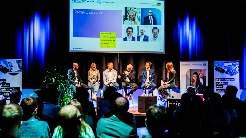 After the opening by the moderators Lisa Urban (THI) and Matthias Brechenmacher (unternehmerTUM), THI-President Prof. Dr. Walter Schober and Minister of State Dr. Mehring addressed the participants. In the subsequent panel, Dr. Mehring discussed the potential and challenges of AI in SMEs together with Prof. Baur and representatives of Bavarian companies.