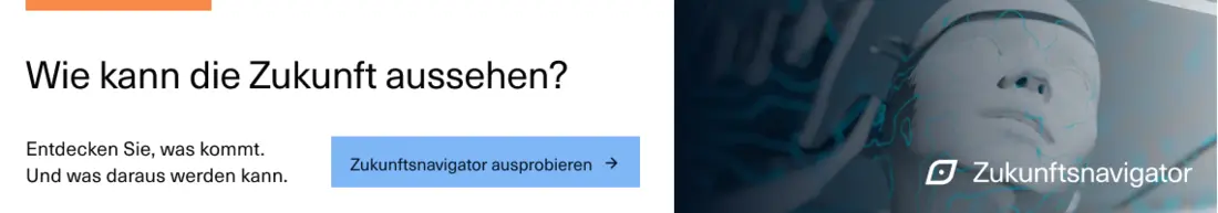 Der Zukunftsnavigator ist Ihr interaktiver Begleiter für strategische Vorausschau oder Foresight. Das Onlineangebot des Bayerischen Foresight-Instituts hilft Ihrer Organisation mit einem persönlichen Chatbot, dem Trendnavigator, und der Foresight-Toolbox dabei, Trends zu erkennen und Zukunftsszenarien zu entwickeln.