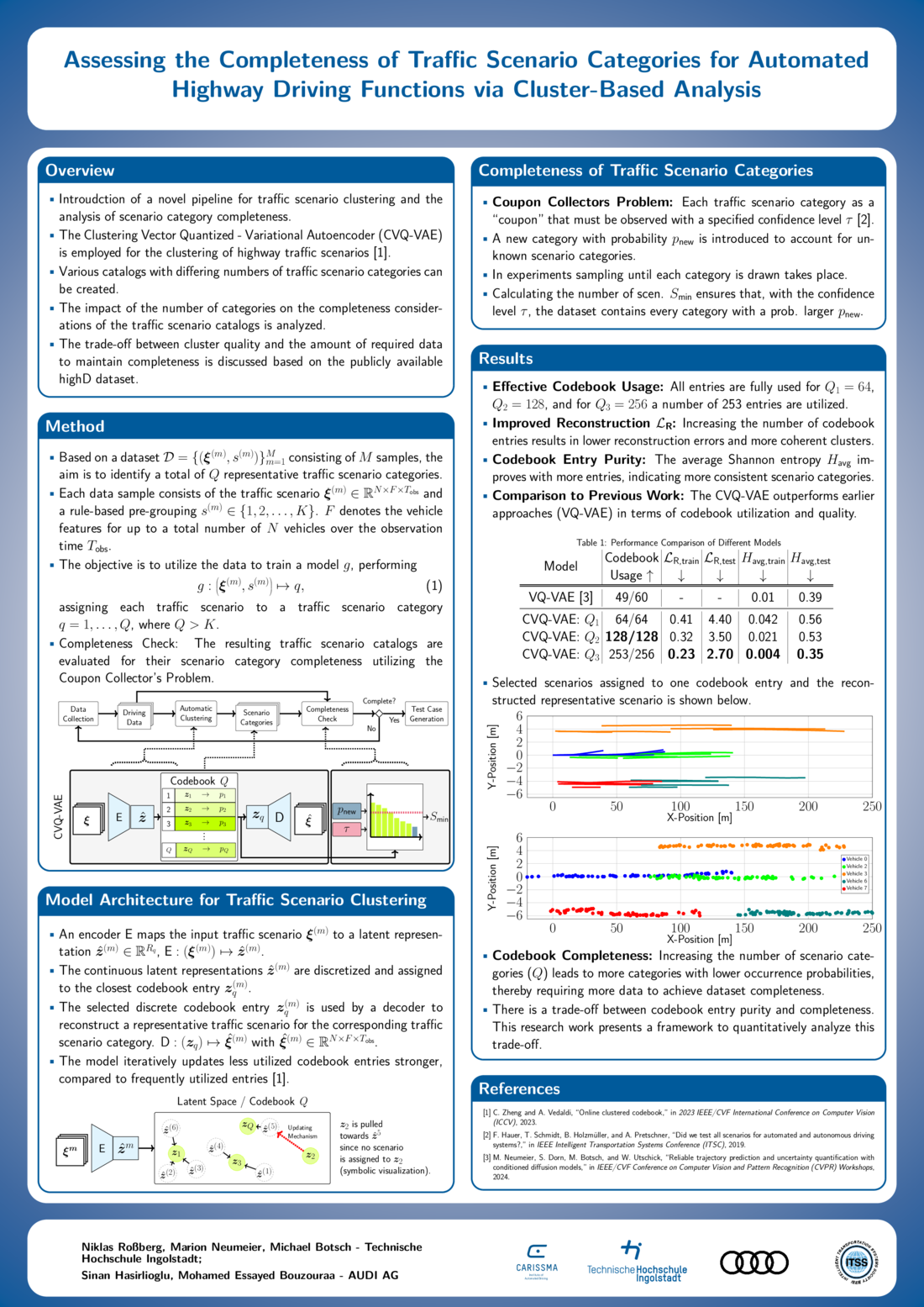 Im Fokus steht ein neuartiger Ansatz, bei dem Szenarien über das beobachtbare Verhalten eines Fahrzeugs definiert werden. Änderungen im Fahrverhalten markieren dabei den Beginn und das Ende einzelner Szenarien. Diese werden anschließend mithilfe moderner Machine-Learning-Methoden geclustert, um strukturelle Ähnlichkeiten zu erkennen und repräsentative Szenarien abzuleiten.