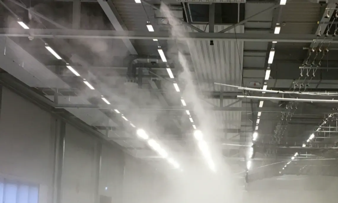 Mithilfe der Nebelanlage in der Indoor-Versuchsanlage können realistische Nebelszenarien simuliert werden. Eine Reduktion der Sichtweite (Meteorological Optical Range) auf bis zu 10 Metern ermöglicht auch die reproduzierbare Nachbildung extremer Nebelevents.