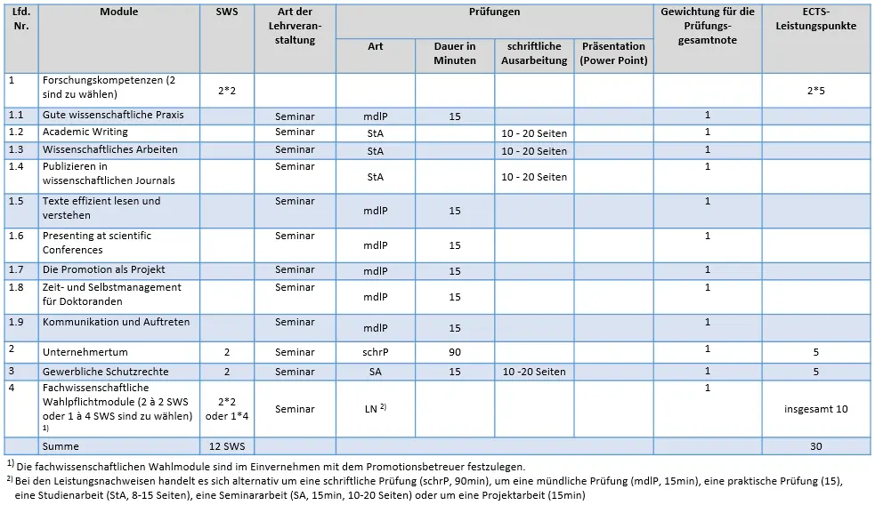 Die Doctoral School bietet für alle Promovenden der THI die Möglichkeit zur Teilnahme am Zertifikat "Promotionsbegleitstudium". Ziel des Zertifikats ist die fachliche sowie überfachliche Weiterbildung der Promovenden. Es beinhaltet vier Module aus den Bereichen Forschungskompetenzen, Unternehmertum und gewerbliche Schutzrechte sowie zwei fachwissenschaftliche Wahlmodule. Das strukturierte Promotionsprogramm umfasst 30 ECTS und eine Regelstudienzeit von sechs Semestern.