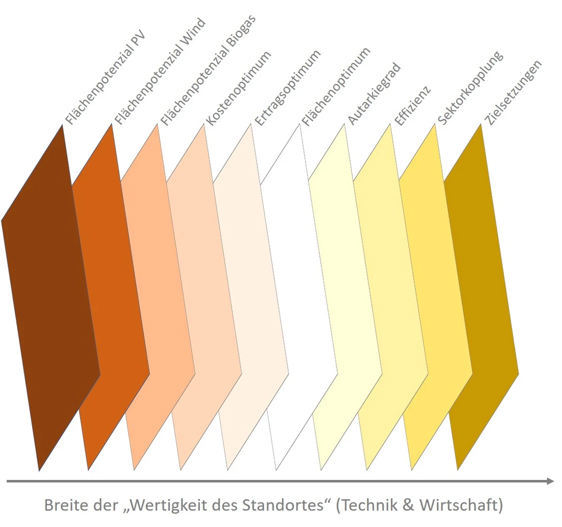 Ziel des Forschungsvorhabens ist es, die Perspektiven verschiedener Stakeholder auf den Ausbau erneuerbarer Energien zu erfassen und diese mit Geographischen Informationssystemen (GIS) so aufzubereiten, dass sie für alle Akteure verständlich sind. Dies ermöglicht einen konstruktiven Austausch über die Wertigkeit bestimmter Flächen für Wind- oder Solaranlagen und hilft,