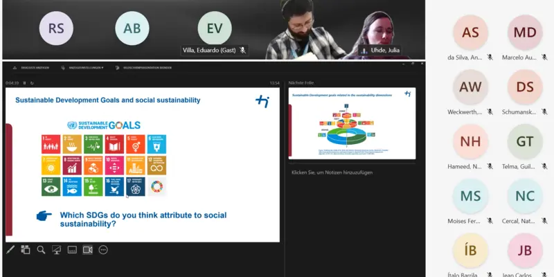 Am 20. Oktober fand der Live-Online-Kurs „Introduction to Social and Cultural Sustainability“ mit Studierenden aus Deutschland und Brasilien im Rahmen des Projektes sustainED statt. Die Mitwirkenden Julia Uhde, Annika Busche und die Projektreferentin Eva Birke leiteten den Kurs „Introduction to Social and Cultural Sustainability“.