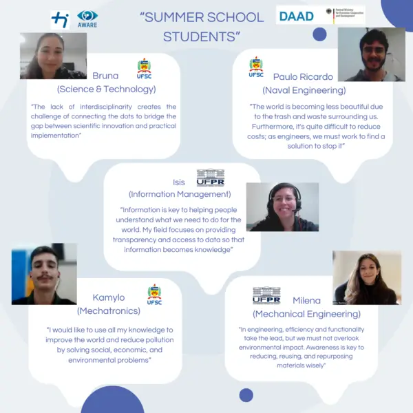 - Bruna (Science & Technology, UFSC): She views sustainability as crucial in today's job market. Her thesis aims to apply sustainability principles to real-world healthcare. As she nears graduation, she is eager to deepen her knowledge and start practical applications in this field.