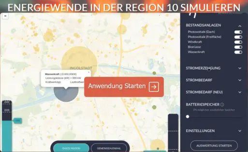 Energiewende regional und individualisiert. Welchen Einfluss haben E-Mobilität, Wärmepumpen und Batteriespeicher auf den Energiebedarf und den Autarkiegrad in Ihrem Landkreis? Probieren Sie es einmal aus.