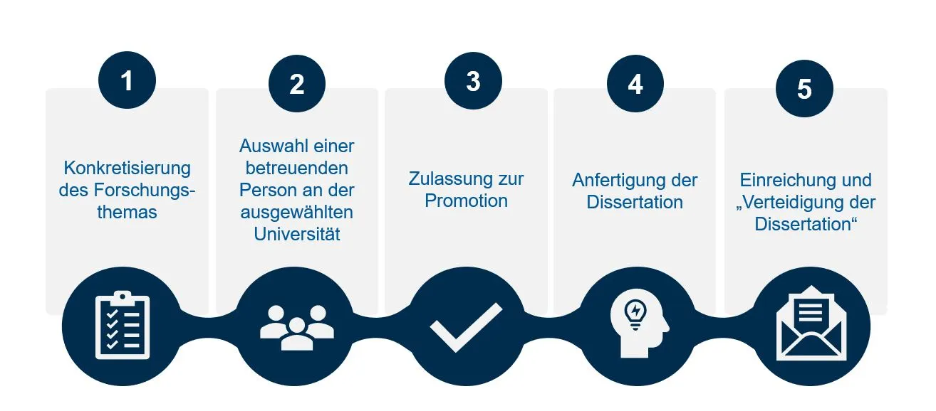 Der genaue Ablauf des Promotionsverfahrens ist in den Promotionsordnungen der kooperierenden Universitäten und Fakultäten geregelt und unterscheidet sich dadurch je nach Kooperationspartner.