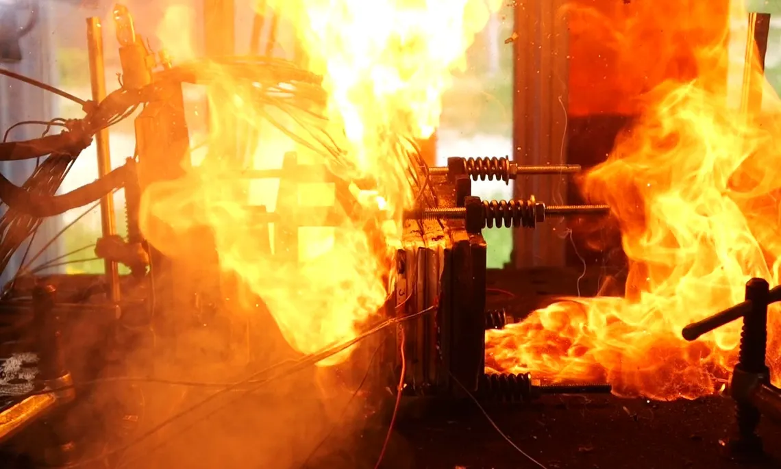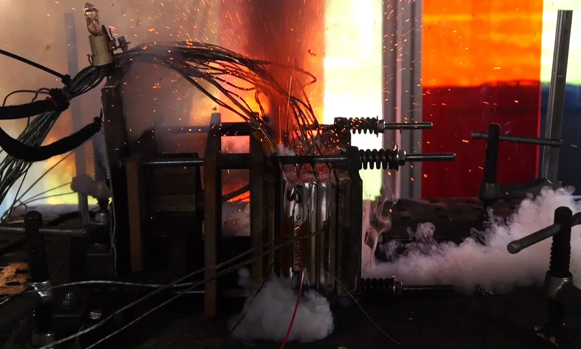 Das thermische Durchgehen (engl.: Thermal Runaway) ist der Zustand einer Lithium-Ionen Zelle, bei dem mehr Wärme innerhalb der Zelle entsteht als abgeführt werden kann. Dies führt zu einem rasanten Temperaturanstieg, begleitet von Gasentwicklung, Flammenbildung und verheerenden Konsequenzen für die Umgebung. In Batteriesystemen löst die entstandene Wärme das thermische Durchgehen in benachbarten Zellen aus, was als thermische Propagation (engl.: Thermal Propagation) bezeichnet wird. Ein präzises Verständnis der Abläufe und wirkungsvolle Möglichkeiten zur Gefahrenreduktion sind entscheidend für die Entwicklung von Batteriesystemen mit höchster Sicherheit und Kundenakzeptanz.